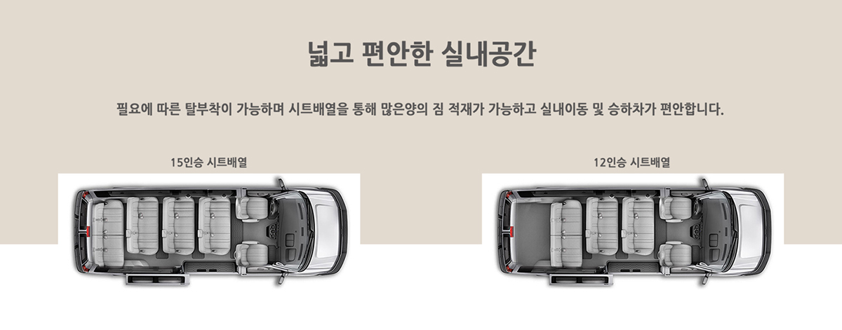 세단형 승용차에서는 느낄 수 없는 안락한 실내공간과 탁월한 주행성능으로 VIP를 편안하고 안전하게 모셔드립니다.